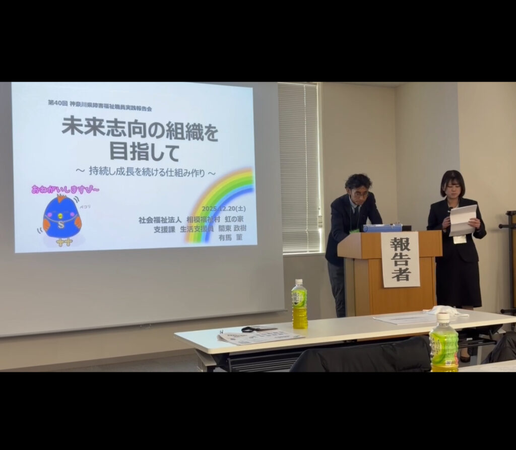 先週末12/20(土)、「第40回 神奈川県障害福祉職員実践報告会 第二分科会 障害者支援部会実践報告会」で虹の家の取り組みに関して報告をしてきました!