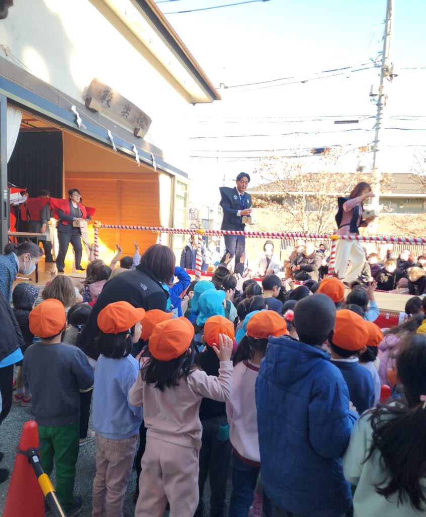 午後から5歳児は二宮神社んも節分行事に参加しました。初めての参加でしたが神主さんにおはらいをしてもらったり、豆をとったり、保育園とはまた違う雰囲気の豆まきを経験してきました。
