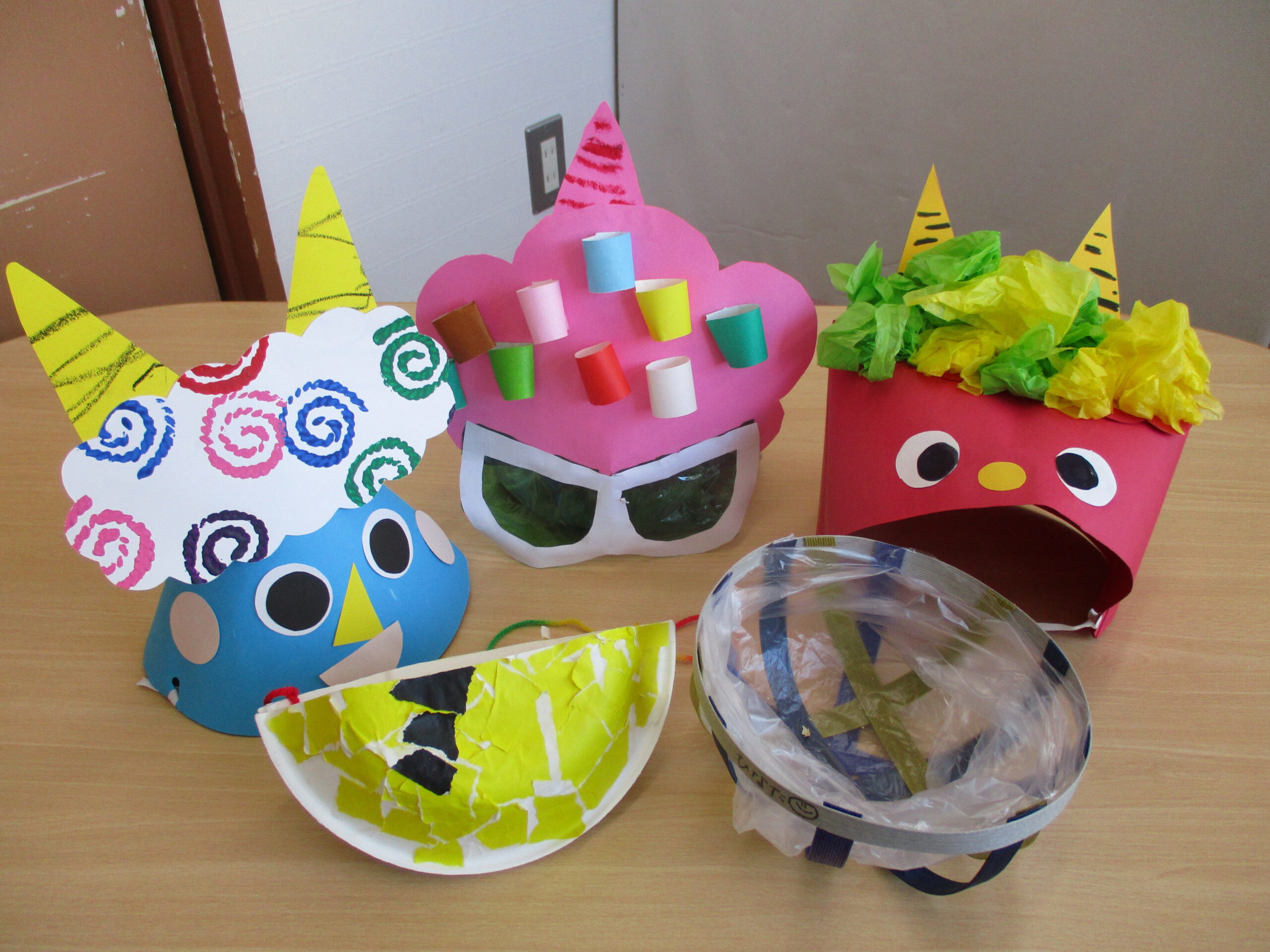 可愛い鬼のお面がたくさん!そう、今日は節分です。朝から「鬼がきたらどうしよう…。」と呟く子や「豆まいて鬼をやっつけるんだ」と息まく子と子どもたちの表情も色々でした。