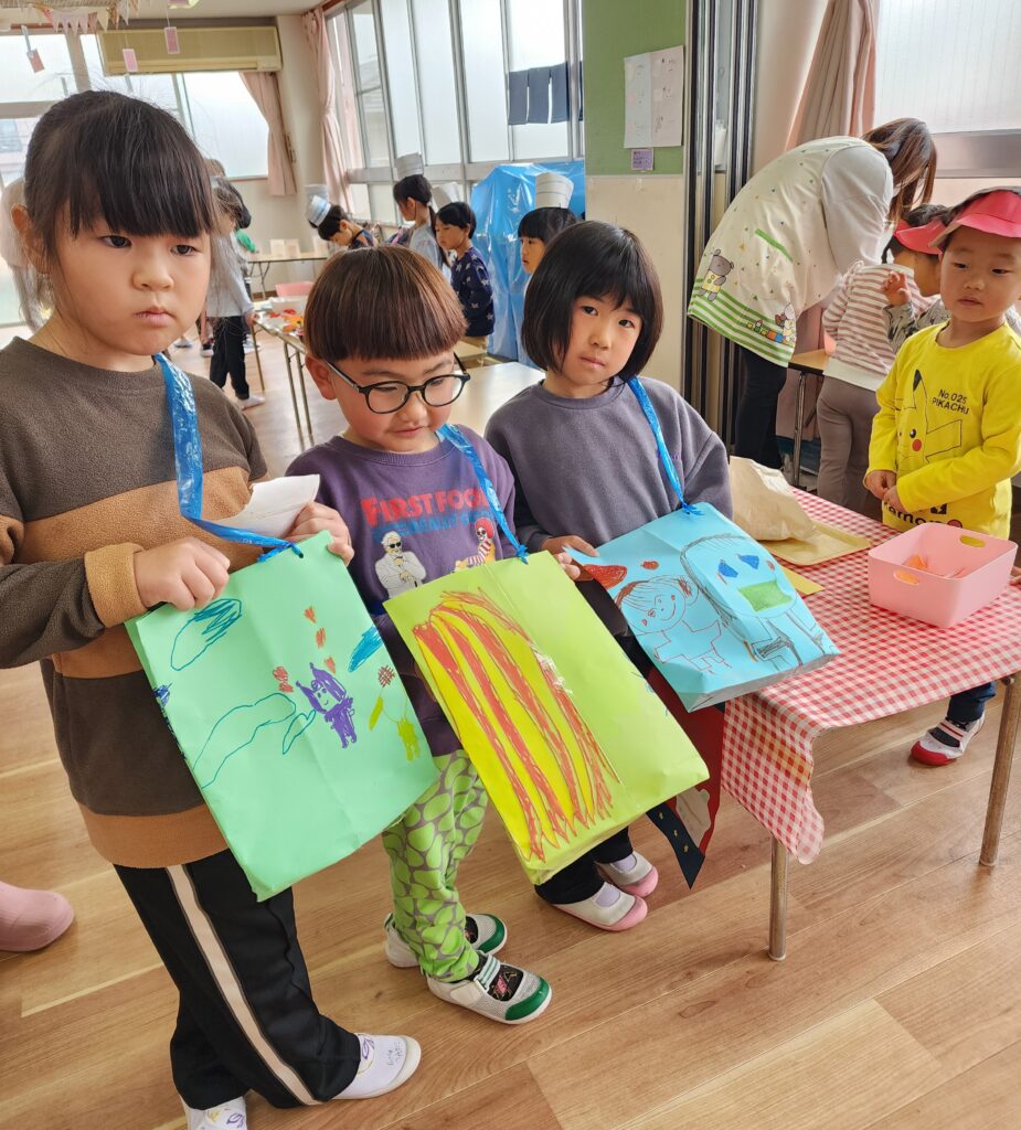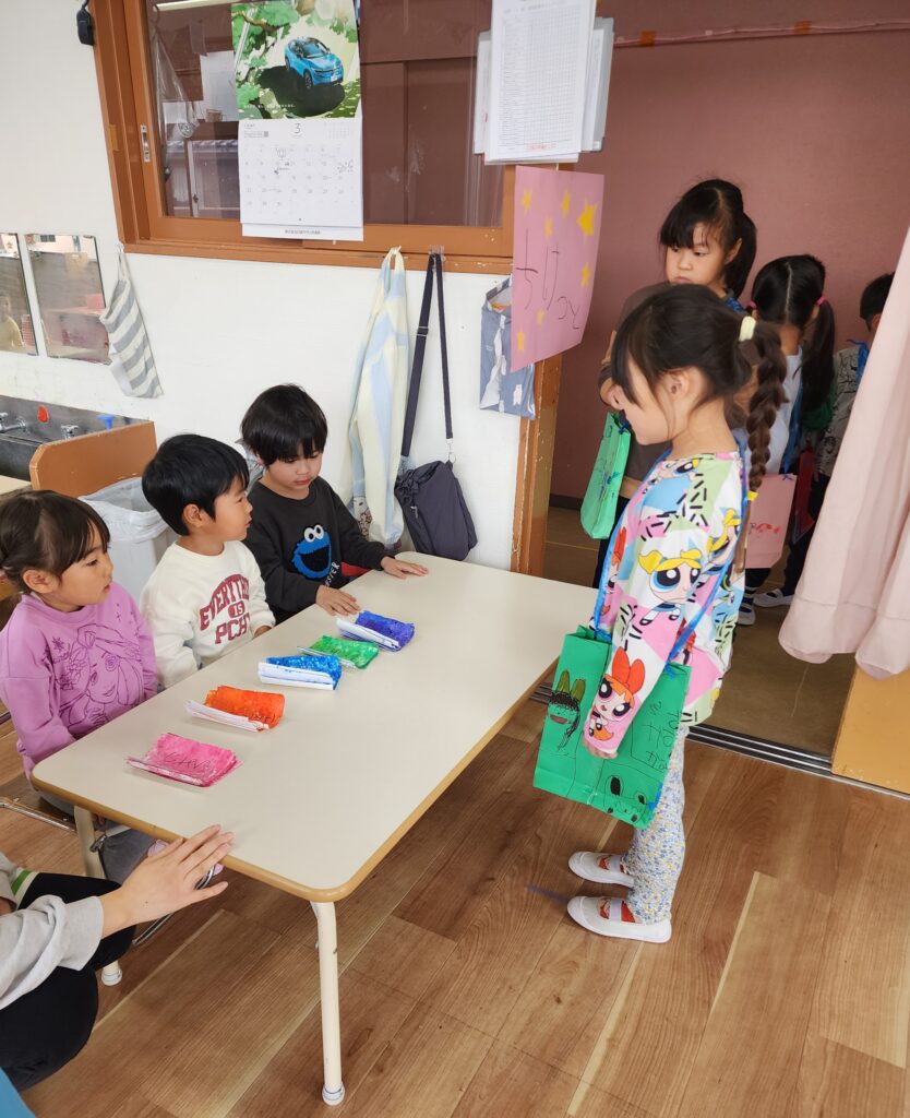 5歳児さんは手作りのバッグをもってお買い物です。