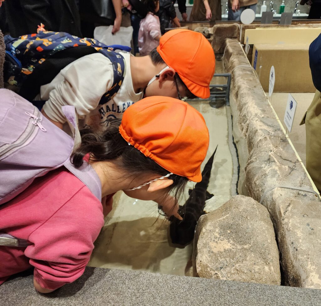 タッチプールではひとでややどかりをさわらせてもらいました。ちょっと固かった…。と思っていた感触と違っていたようです。(やわらかいと思っていたようです)