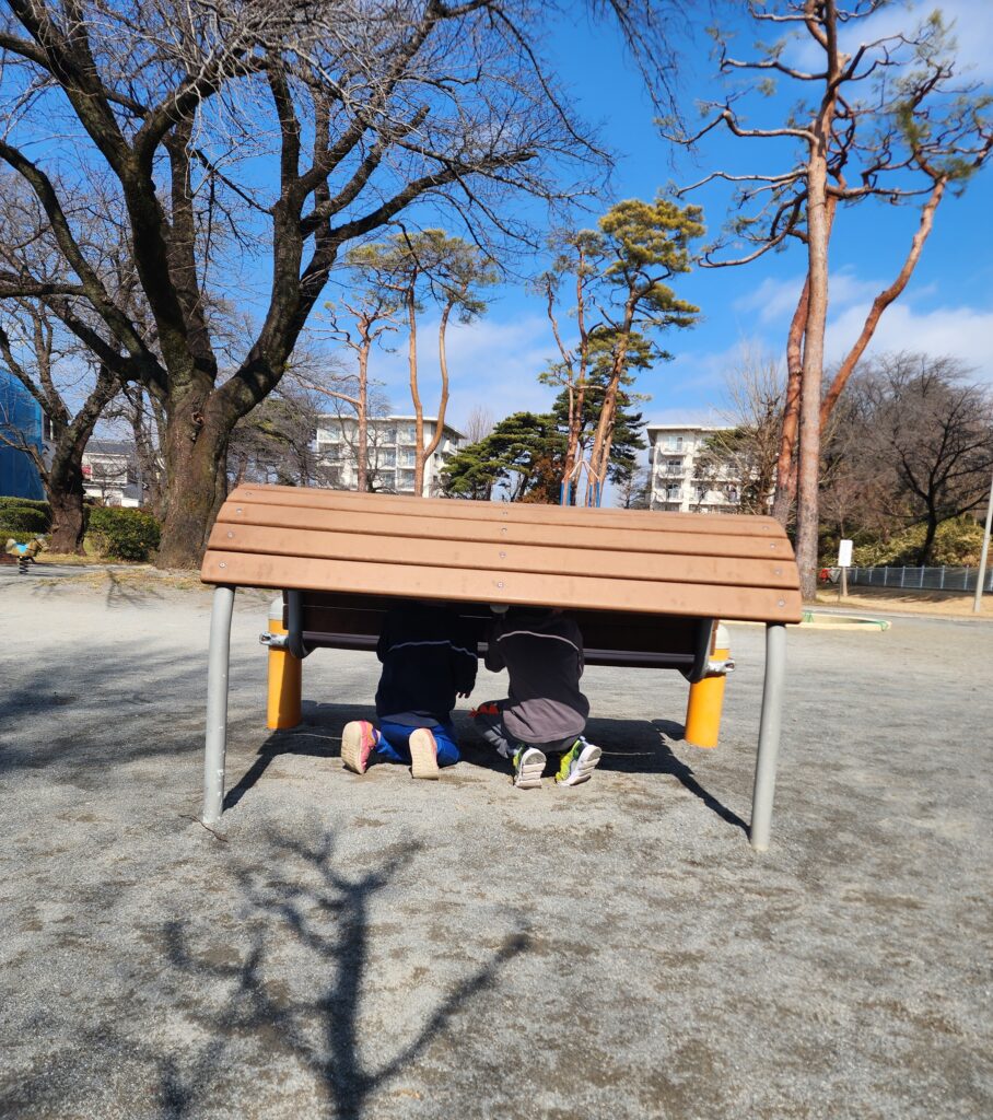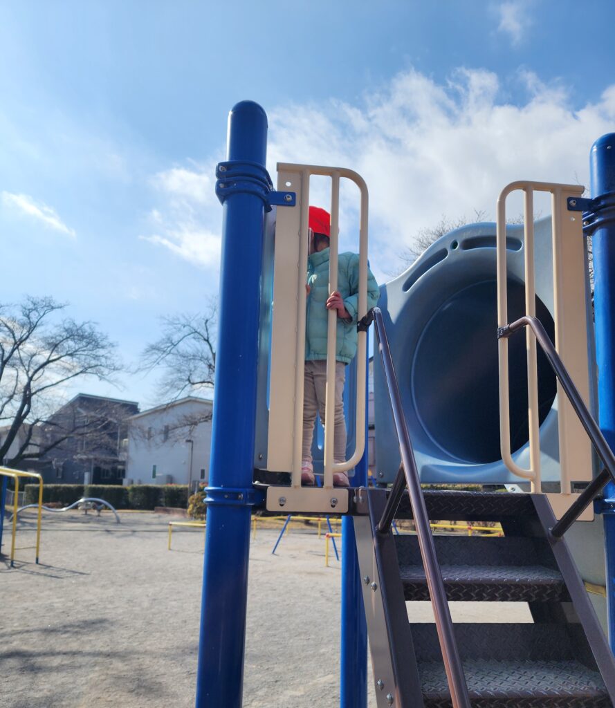 ポカポカ陽気に誘われて、2歳、3歳、4歳でロケット公園にお散歩に来ました。