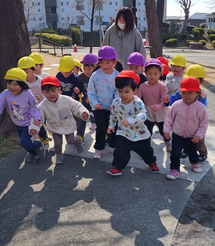 マシュマロ保育園のお散歩は体力づくりも兼ねています!