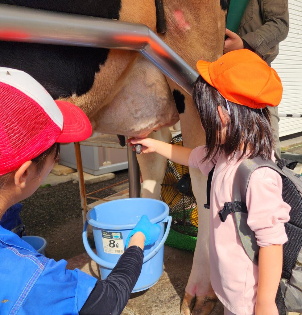 初めての経験におっかなびっくりでしたが、手を添えてもらってみんな乳しぼりができました。「温かった」「優しくしたよ」とここでもいろんな感想が飛び出しました。