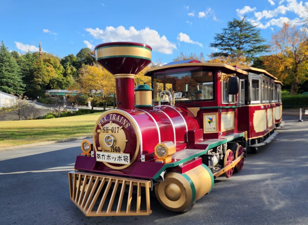 最後は特別にあかポッポ号にのせてもらいました。こどもの国をのんびりと1周。歩いてみる景色とはまた違ってみえました。