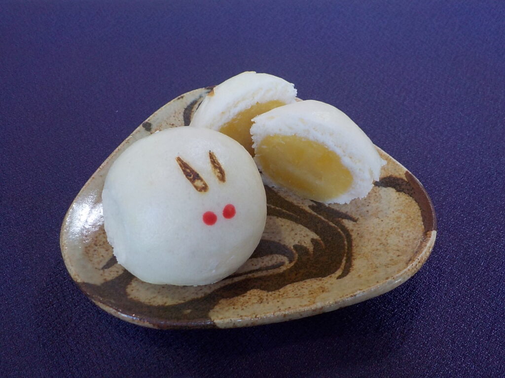 月と言えば・・・うさぎ?の発想(月でうさぎが餅をついている)からうさぎ饅頭となったそうです。