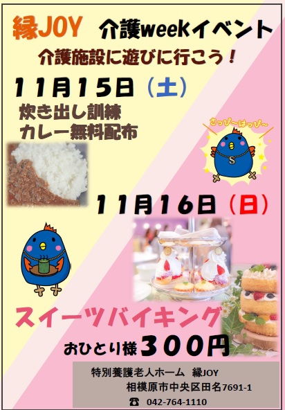 介護ウィークとは、相模原市内の高齢者施設がこの期間にイベント・研修会などを開催し、地域の皆様に介護についての理解を深めて頂くためのものです。