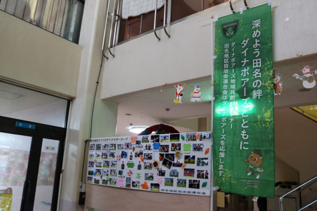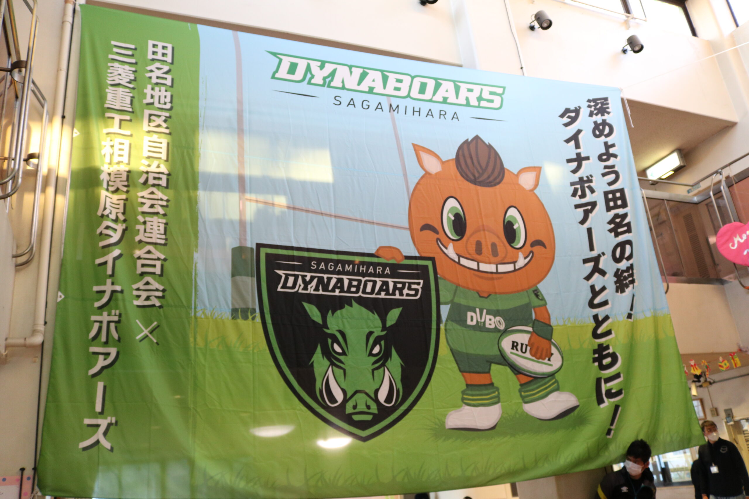 自治会はラグビーの「ダイナボアーズ」のチームを応援しています。
