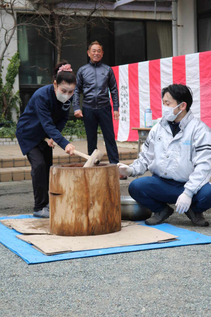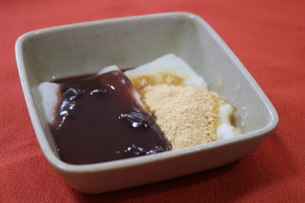 つきたてのお餅は、昼食に「お雑煮」「きなこ」「あんこ」味にして美味しくいただきました。