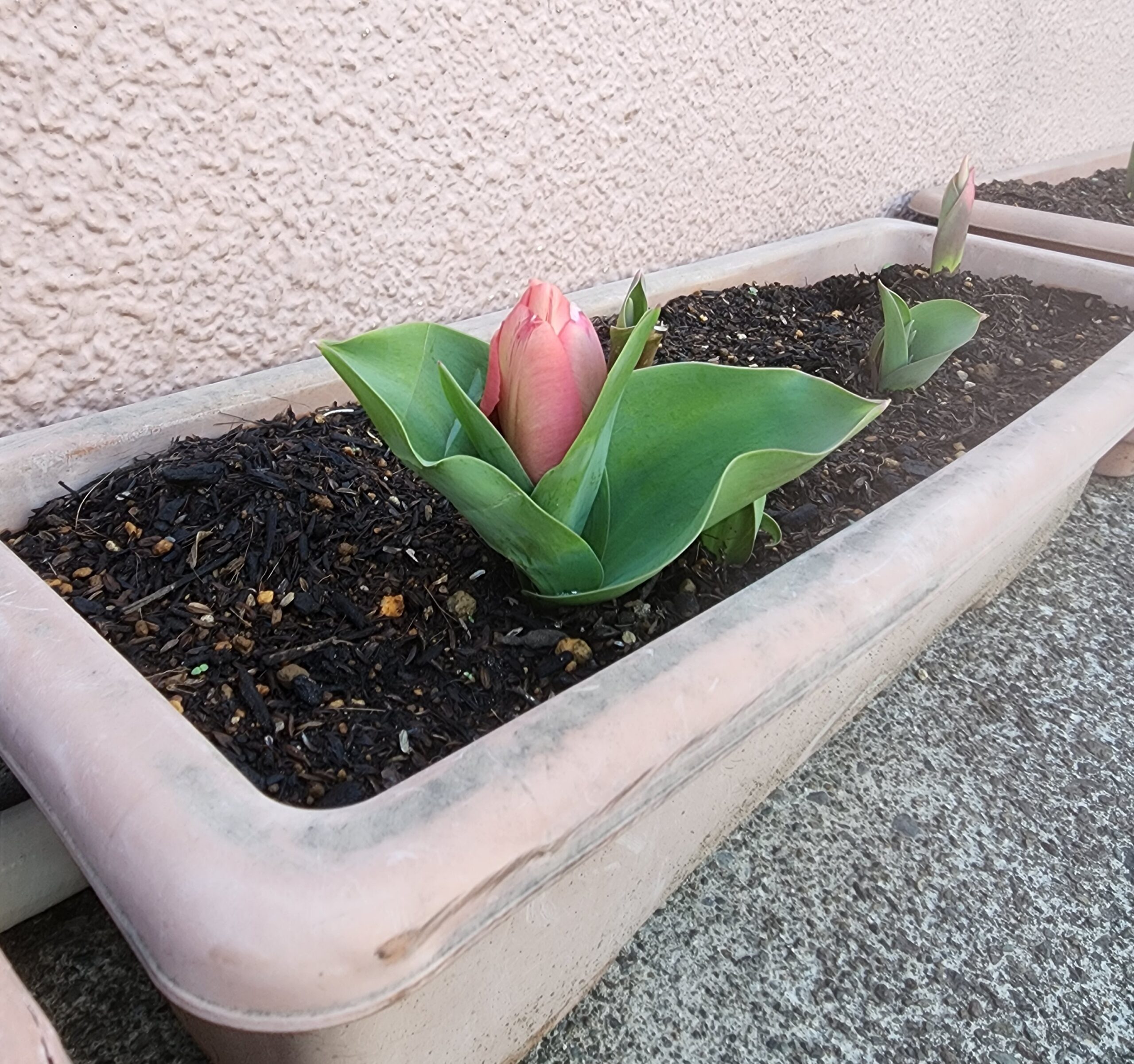 あと1週間で4月。新しいお友だちも迎えます。少しずつ暖かくなってきているなと思ったら、園長先生のプランターからチューリップが咲きそうです!