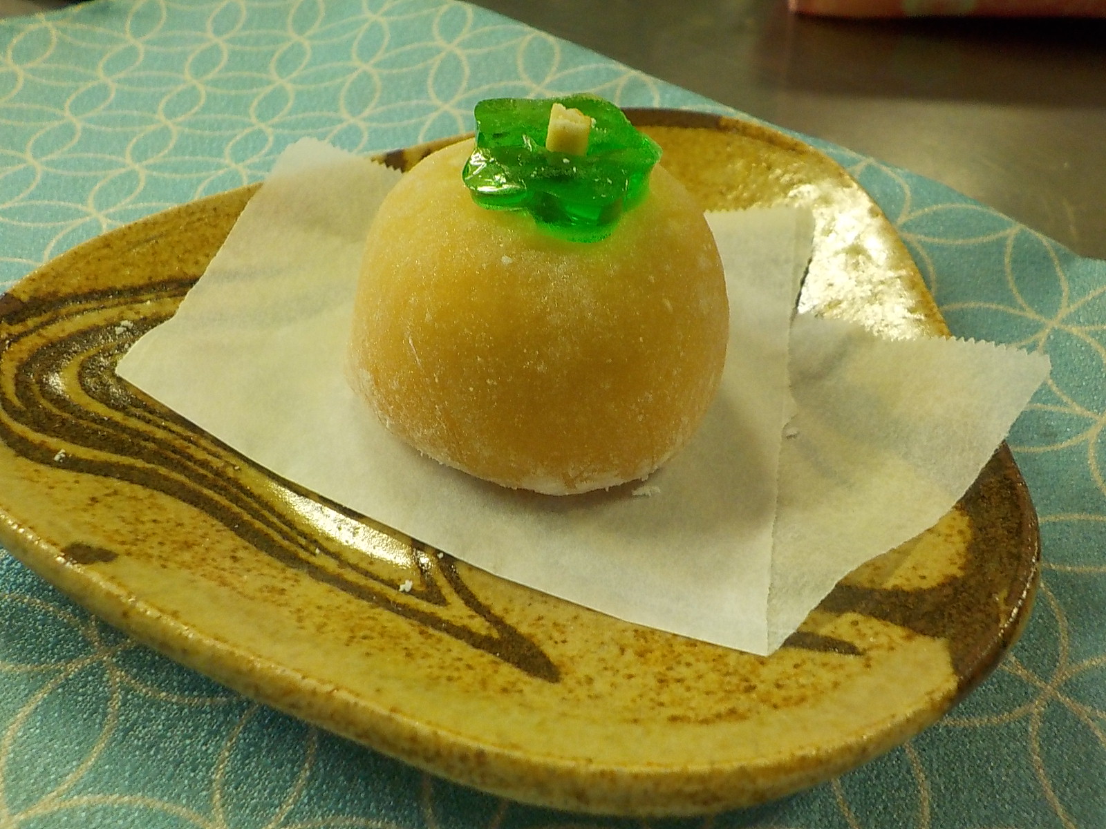 今日のおやつは元団子屋に勤めていた調理員が提案された、『柿大福』。