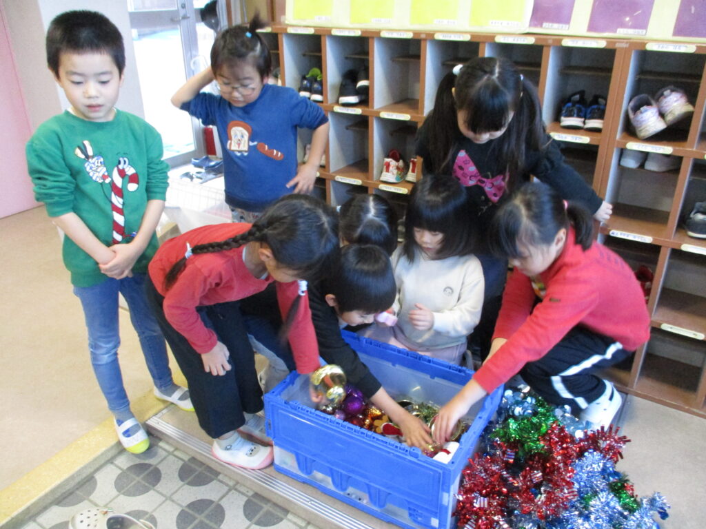 飾りつけをしてくれたのは、5歳児さんと園長先生。毎年恒例になっていて、5歳児さんの楽しみにもなっています。