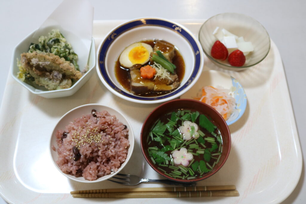 昼食にお祝い御前をいただき、お祝いしました。