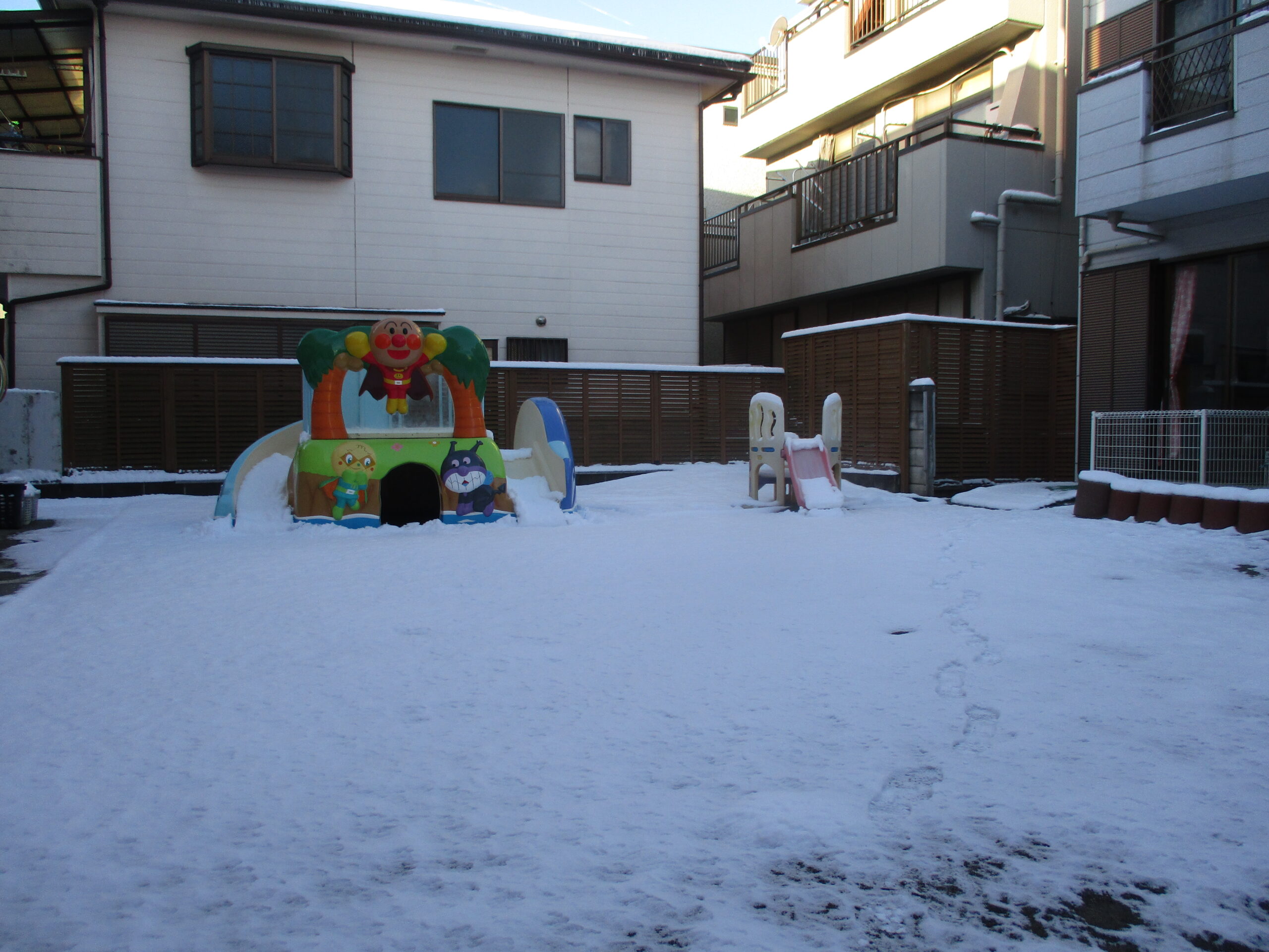 土曜日の夜から日曜日のお昼にかけて降った雪は月曜日の朝も、子どもたちを待っているように残っていました。
