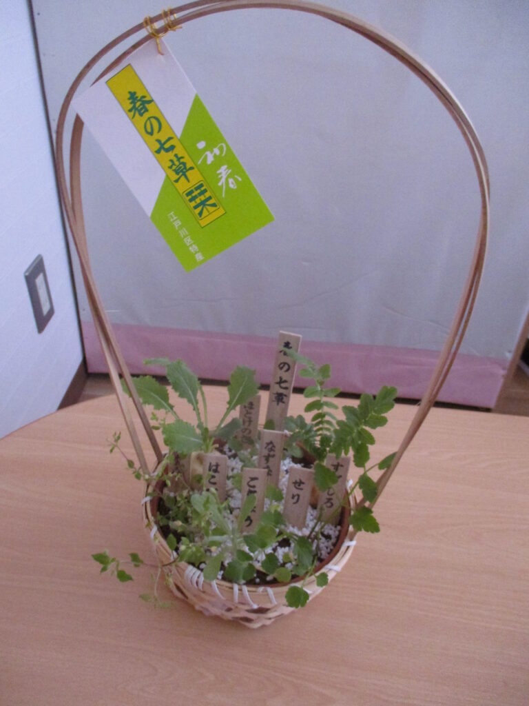 七草がゆの日には八百屋さんから素敵なプレゼントも届きました。春の七草みなさんいえますか?