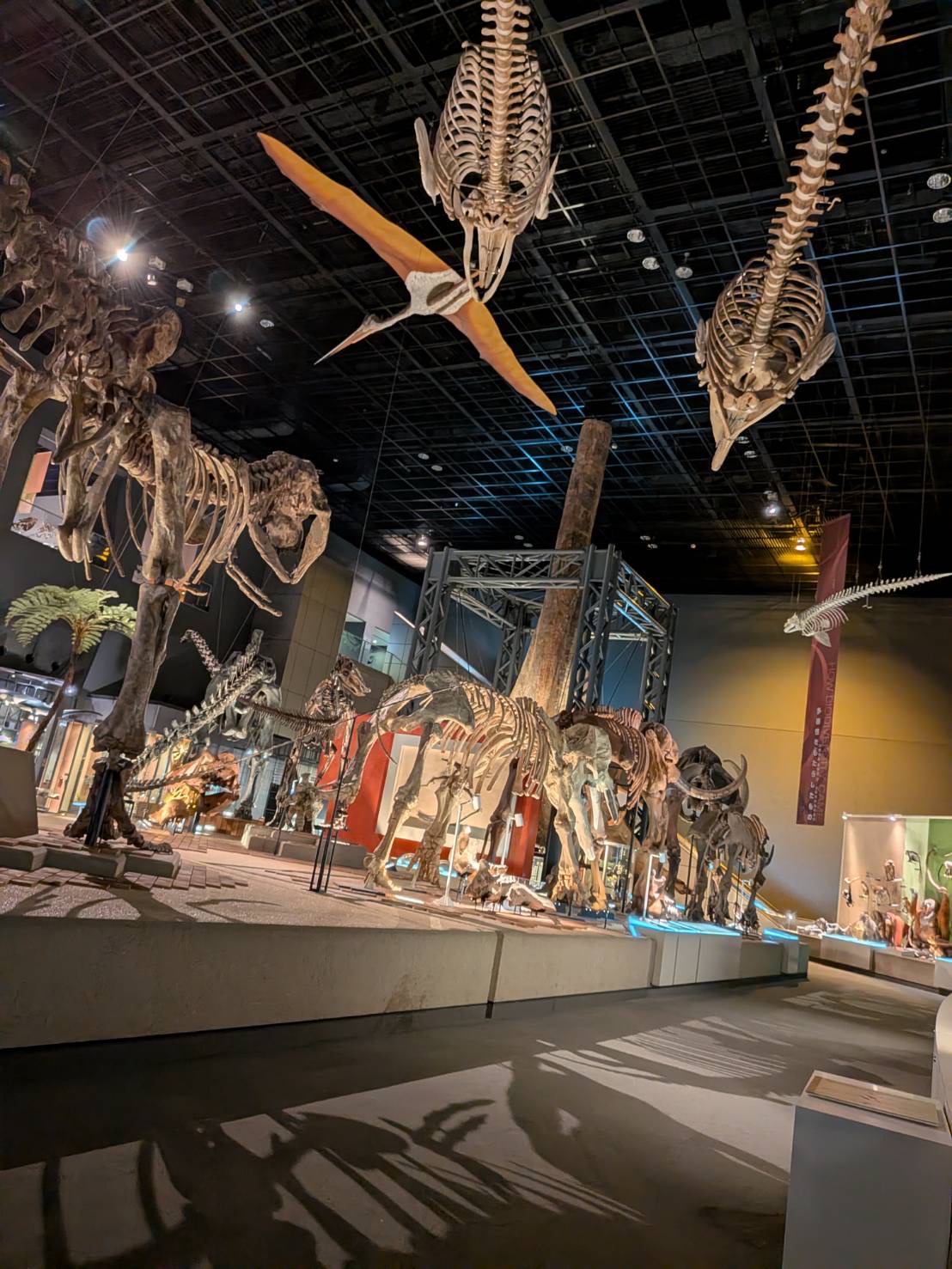 館内に入ると恐竜の骨格標本や大きな動物の展示が広がり、「おぉ~!」、
