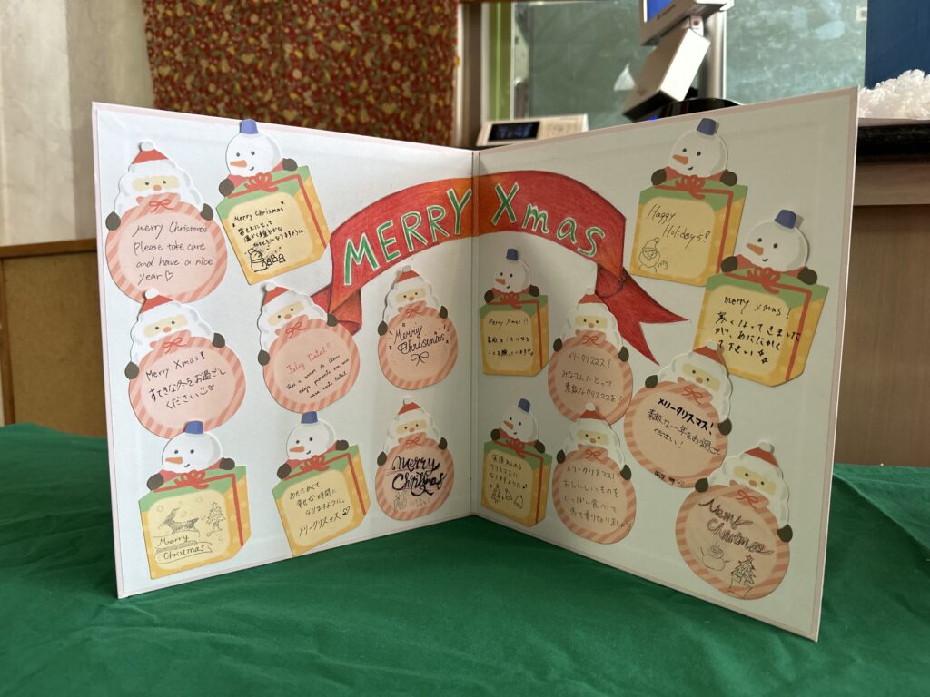 また、弥栄高校の合唱部の皆様に来園して頂き、歌のプレゼントや色紙のプレゼントを頂きました!!今年も虹の家のクリスマス会で歌のプレゼントを頂きありがとうございます(⋈◍>◡<◍)。✧