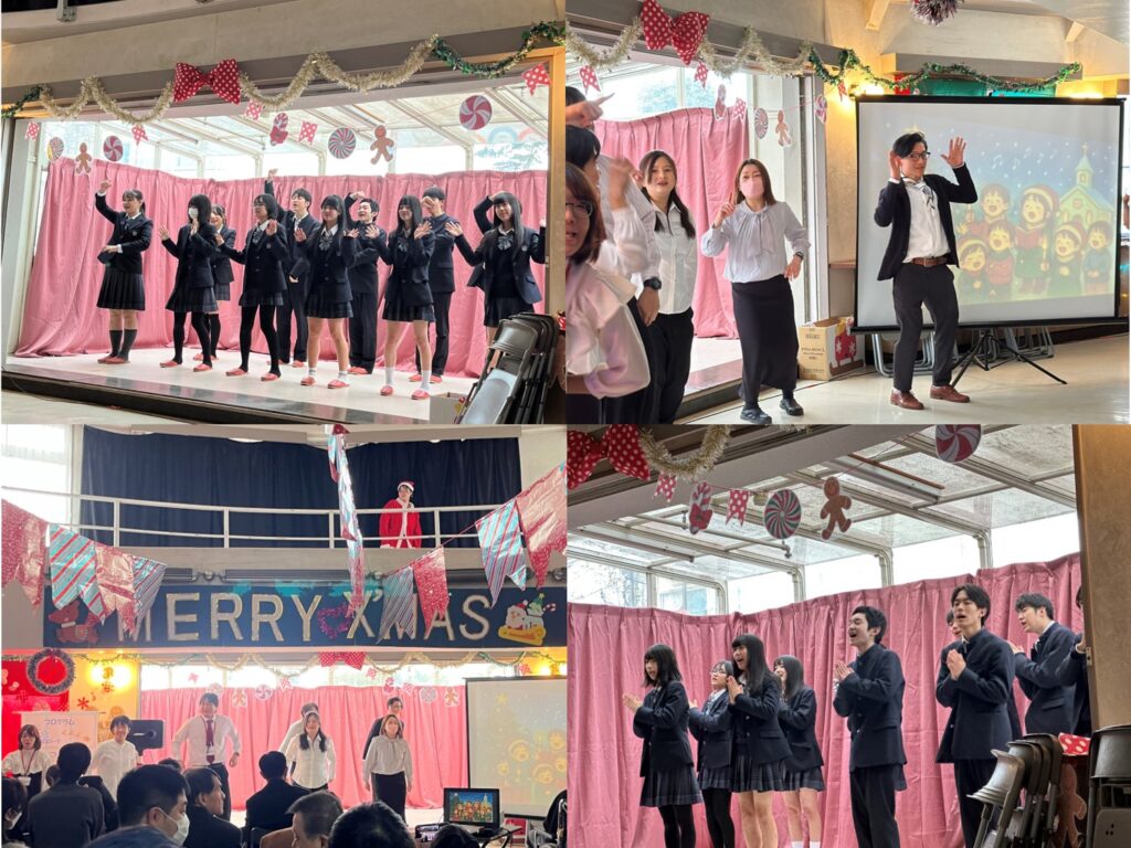 職員の出し物ではクリスマスにまつわる話をもとにしたお話とダンスです!!2階からは風船が降ってきたり、サンタさんがクリスマス会を覗きに来てみたり👀