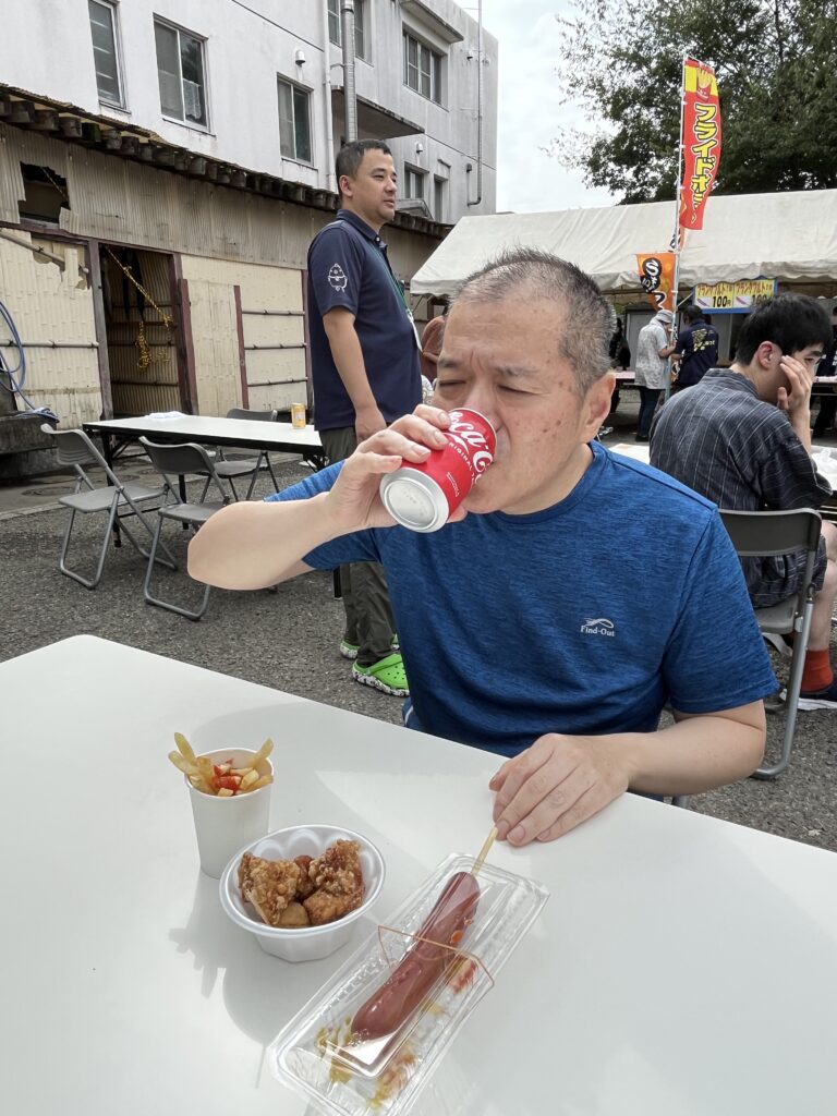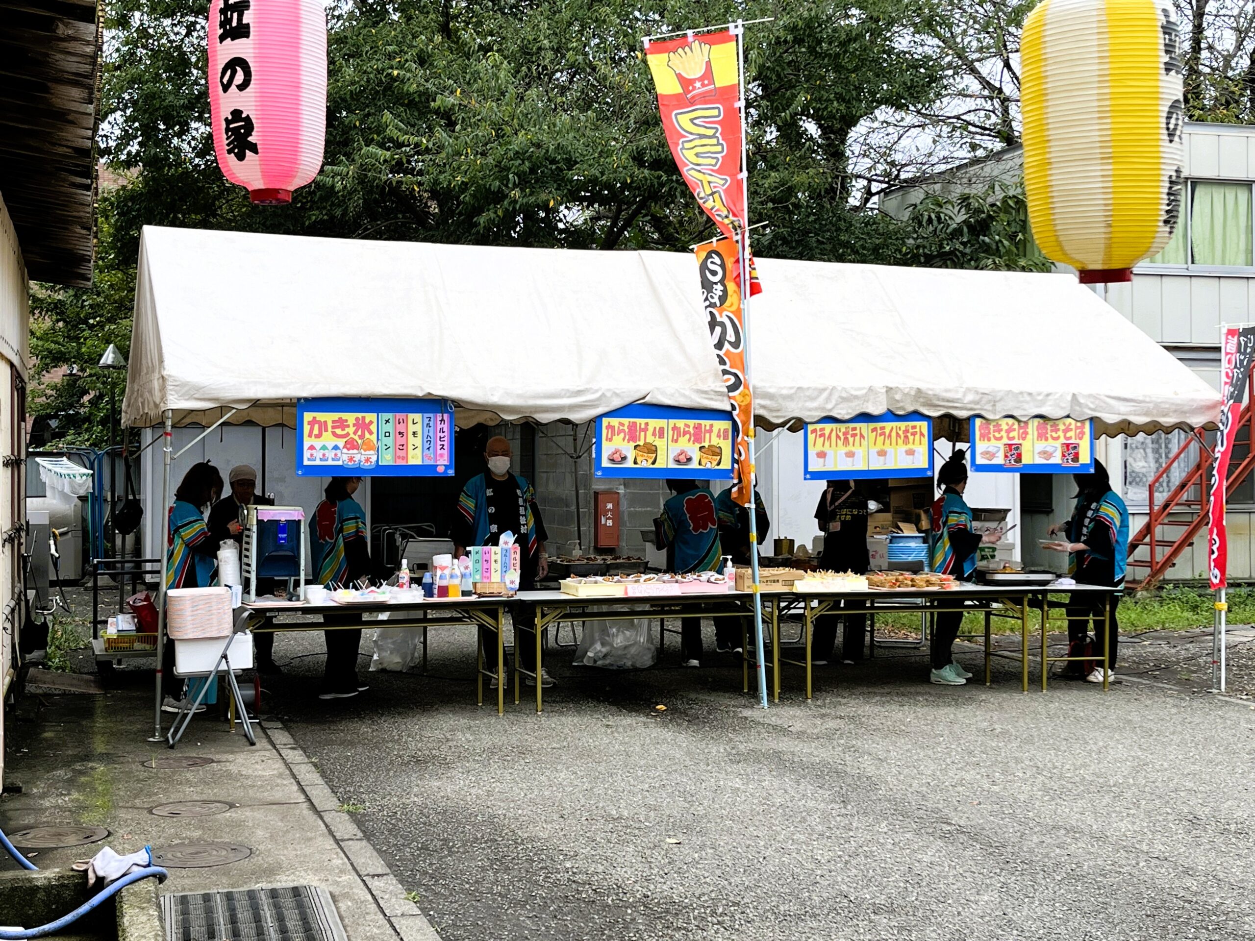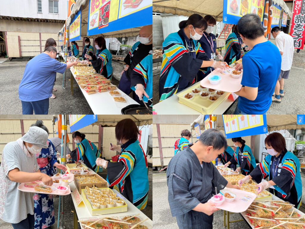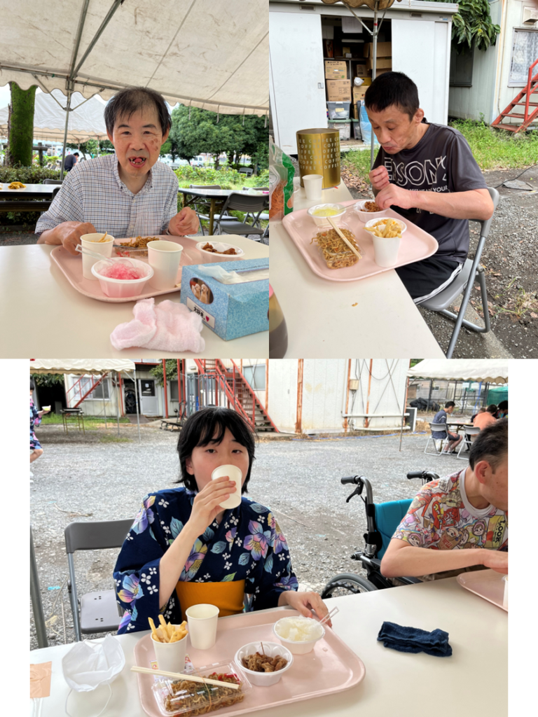 かき氷、から揚げ、ポテトフライ、焼きそばを皆様