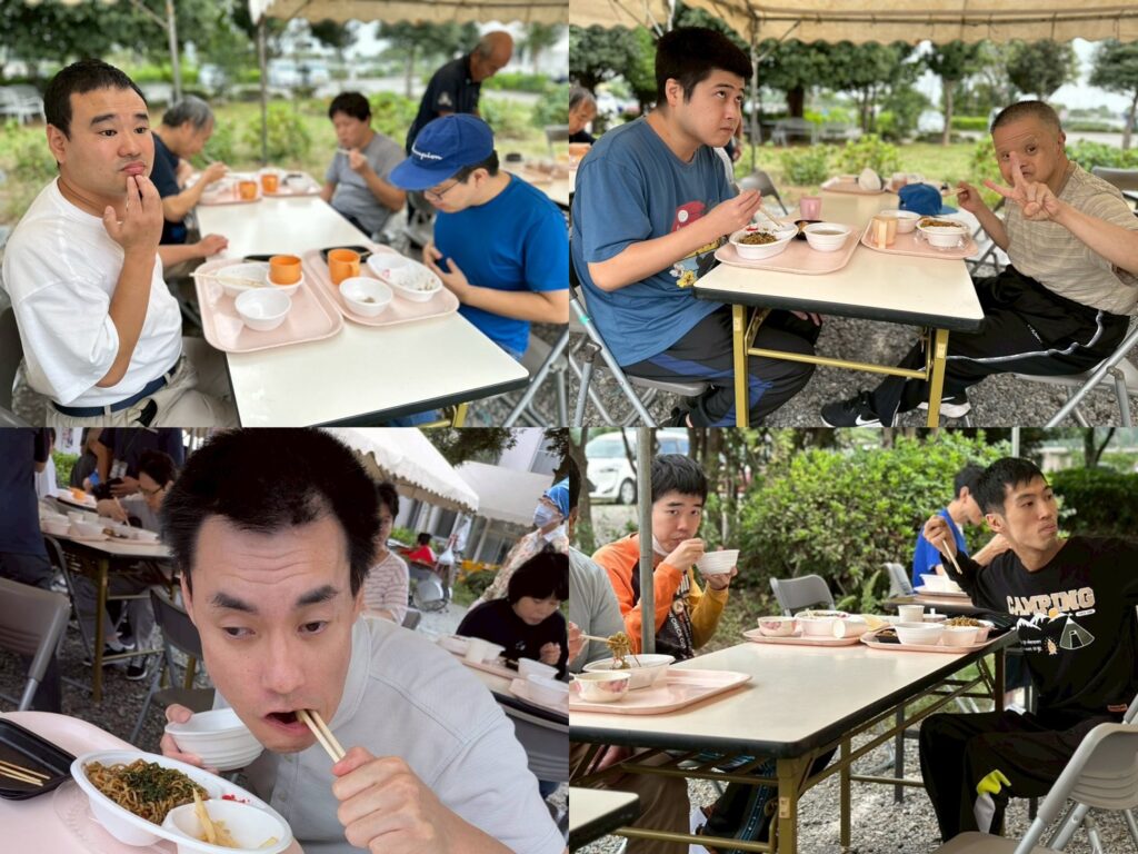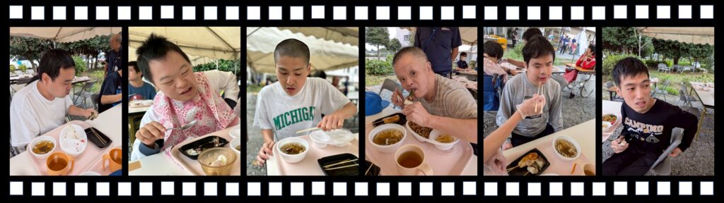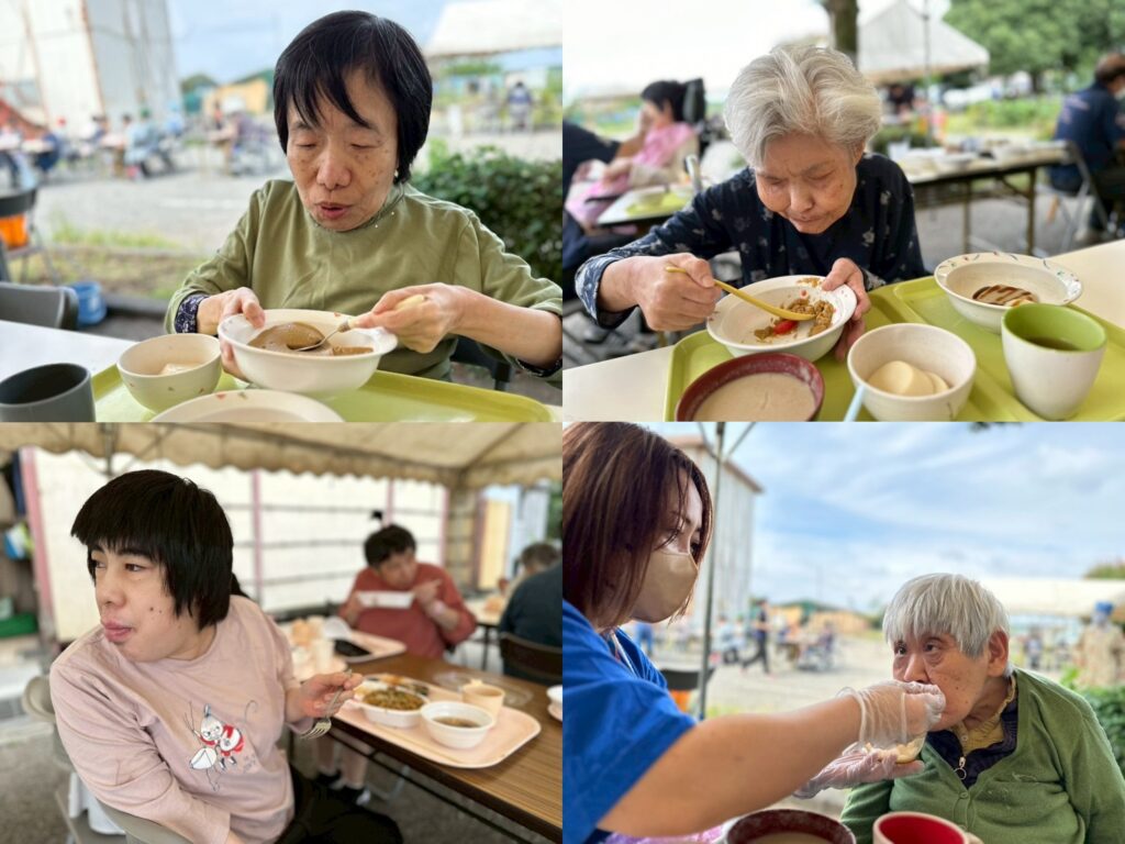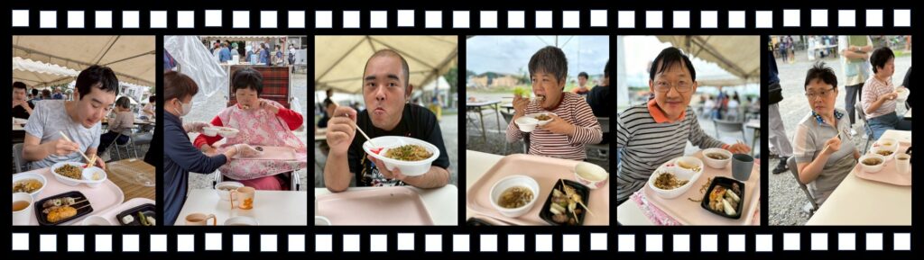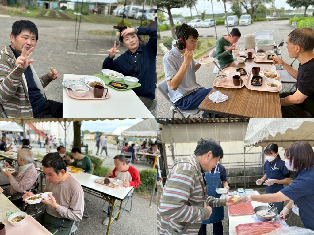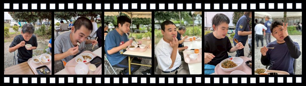 当日のメニューは焼きそば・三種の串物・ポテト🍟・汁物・アイス🍨で、保護者・職員で協力して焼きそば・串物を焼きました!!。ご利用者の皆様より「美味し~😊」の声が多く聞かれ、数名の方は焼きそばをおかわりされる方もいました(´~`)モグモグ