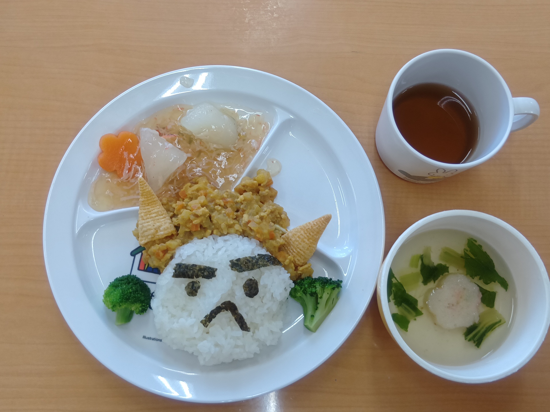 縁JOYに住んでいる赤鬼さんと青鬼さんが子どもたちの所にやってきました。実際に鬼が来ると、胸がドキドキして怖くなってしまったようです。でも、勇気を出して立ち向かっていく子、涙を流しながらも豆をまく子、先生の後ろに隠れてしまう子と反応はそれぞれでしたが、皆で鬼を退治する事ができました。鬼さんとのお別れの時はみんな「ばいばい~!」と笑顔が戻っていました。子どもたちの勇気のおかげで、KIDS⁺保育園の悪い鬼は逃げていき、今年も健康で元気いっぱいに過ごせます!